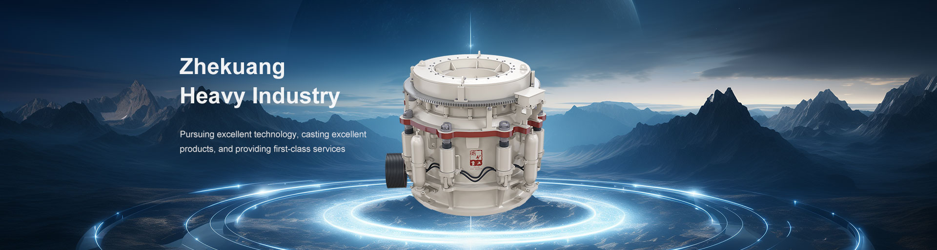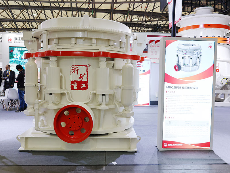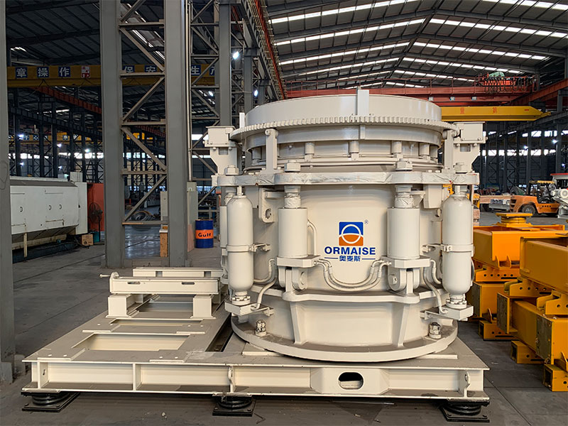 多缸液壓圓錐式破碎機工作時動錐沿著內(nèi)部偏心軸做旋擺運動,靠近定錐的地方,物料受到動錐的擠壓和彎曲而破碎,偏離動錐的地方,已破碎的物料由于重力作用從錐底下落,整個破碎和排料過程沿著定錐和動錐之間的破碎腔連續(xù)依次進行。機體外圍均勻分布若干液壓油缸和蓄能器,結合閥和管路起到過鐵保護和清理破碎腔的作用。